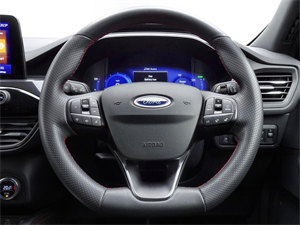 - Flat Bottom Steering Wheel in Sensico with Red Stitching