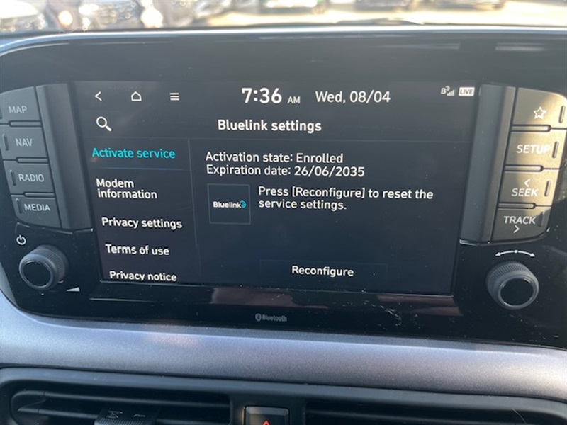 - 8in Touchscreen Navigation inc MapCare-Live Services and Bluelink Connectivity